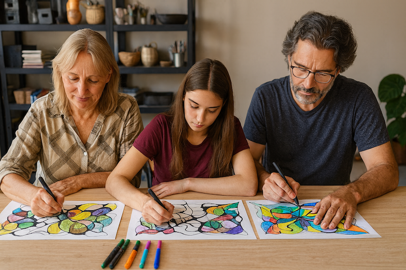 - Neurograficzne sekwencje rysunkowe – praca linią, rytmem i kolorem z jasnym celem (np. uspokojenie, otwarcie, rozwiązanie problemu).